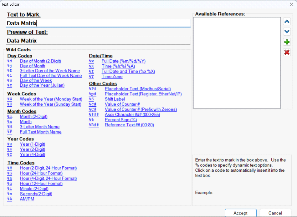 - The Data Matrix Editor window will open. The editor is similar in appearance and function to the Text Editor.