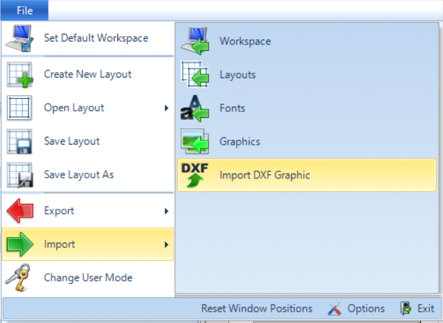- From the submenu, select Import DXF Graphic.