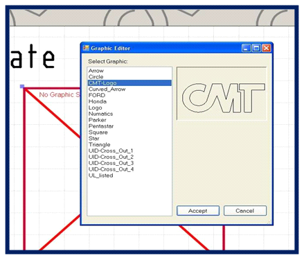 I-Mark software allows graphics or logos to be added to a marking layout.