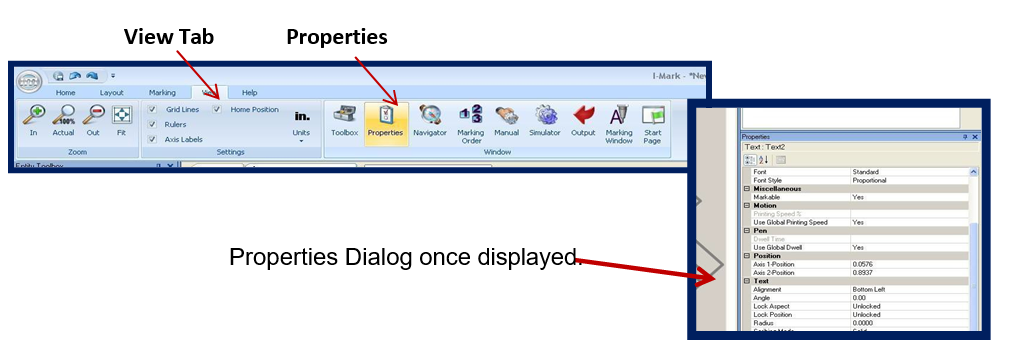 Accessing the Properties Panel