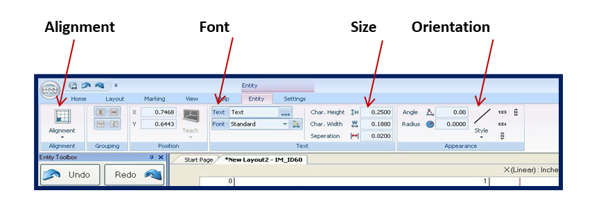 - In the Entity Ribbon, navigate to the Text section.
