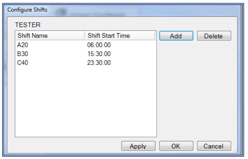 - Once downloaded, the software will reference the time you allocated for each shift and automatically apply the correct shift during production.